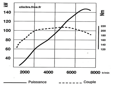 Exprimée en watts ou, plus communément, en chevaux (ch), la puissance s’obtient par le calcul suivant : Puissance (watts) = Couple (Nm) x Régime (rad/s). Pour passer des watts aux chevaux, on applique la conversion : 1 ch = 735,5 watts. Ainsi, Puissance (ch) = Couple (Nm) x Régime (tr/min) / 7000.
