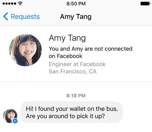 Pour contacter un utilisateur Facebook qui ne figure pas sur votre liste d’amis, vous devez d’abord soumettre une demande. Sur le même principe qu’une demande d’ami, il s’agit d’une demande de message que le destinataire peut accepter ou rejeter. Pour cela, faites simplement une recherche au nom de cette personne. Et trouvez-le sur la liste des résultats. Cliquer dessus vous enverra à son profil Messenger. Ensuite, vous pouvez simplement commencer à taper. S’il s’agit de votre premier contact, le message lui sera envoyé sous la forme d’une demande.